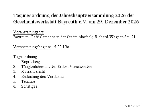 Auf Einladung der Stadt Bayreuth hielt Dr. Ekkehard Hübschmann
